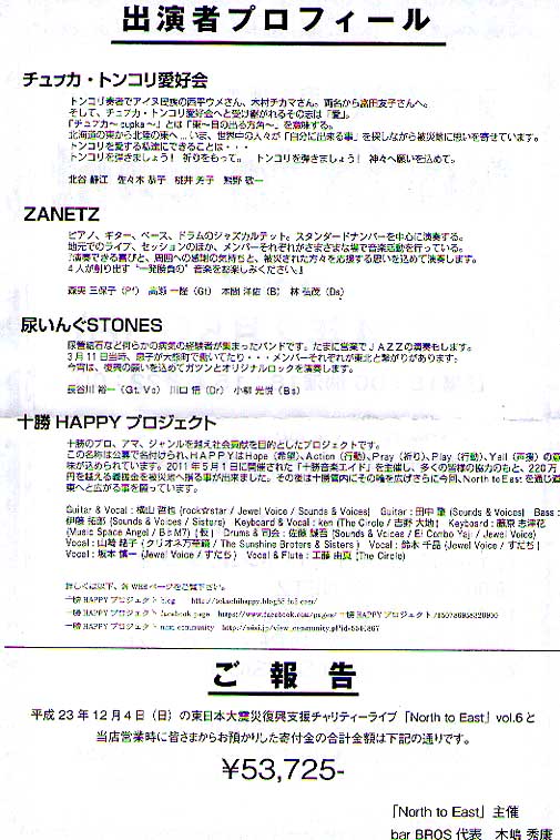 東日本大震災復興支援チャリティーライブ North to east バーBROS