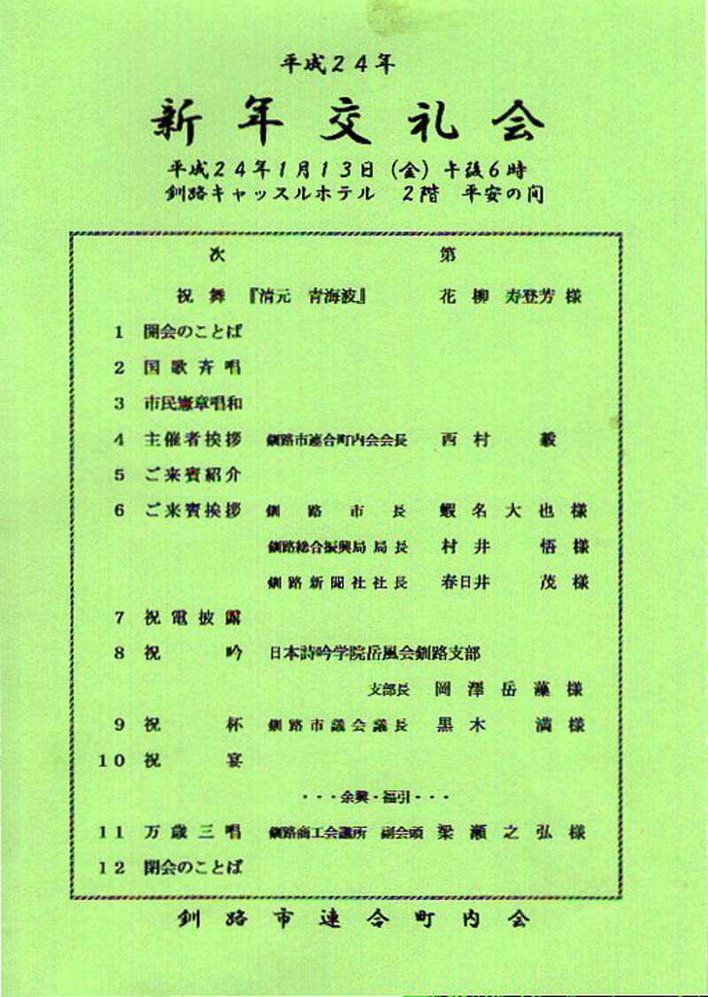 釧路市連合町内会 新年交礼会