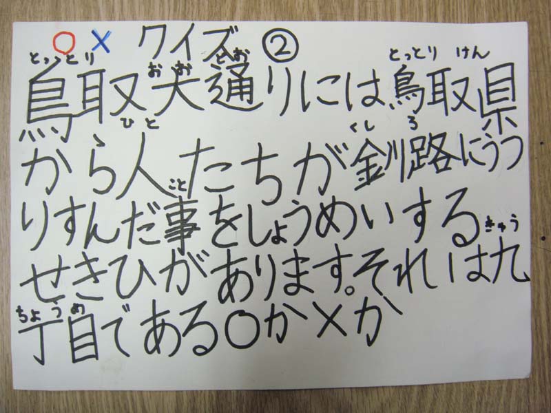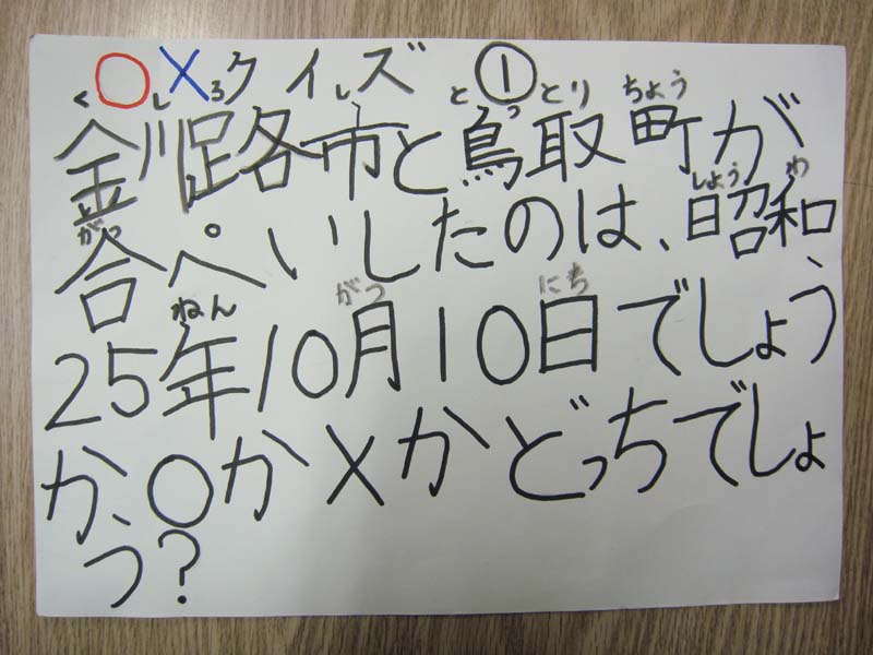 鳥取西小学校 授業参観での○×クイズ