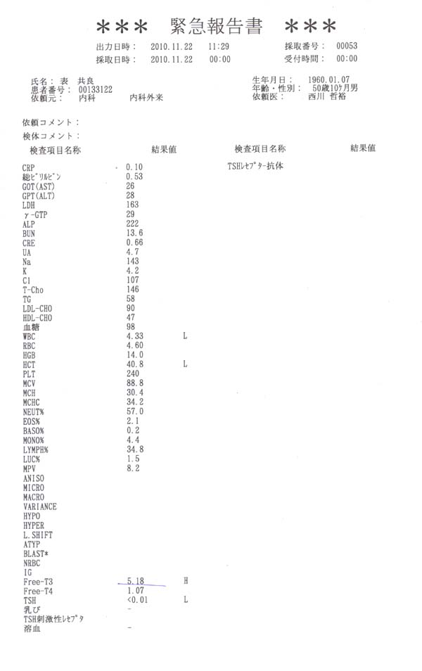 メルカゾール薬を一日3回の食後に1錠を服用しているのですが、今日の検査結果は数値が上がってました!?