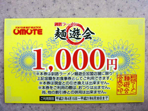当社と釧路ラーメン「麺遊会」のコラボで、使用済み自動車・自動車買取りご成約のお客様にもれなく「麺遊会」の加盟店で使えるお食事券2000円をプレゼントします。※軽四輪は1000円となります。