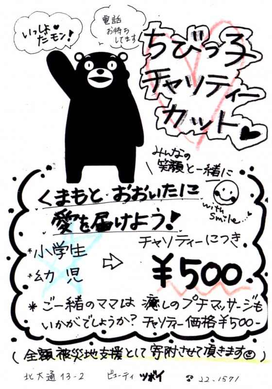 ビューティ ツボイ 「ちびっ子チャリティーカット💛」〜くまもと・おおいたに愛を届けよう!〜