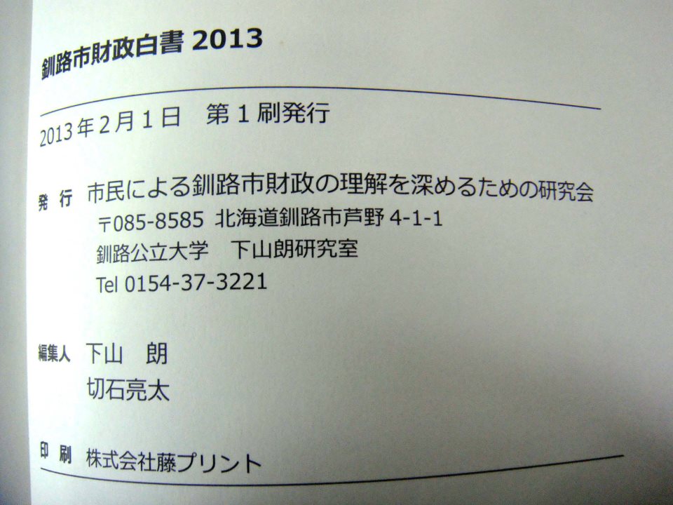 釧路公立大学 下山朗研究室から発行された冊子、「釧路市財政白書 2013」を手に入れました!(^_^)v