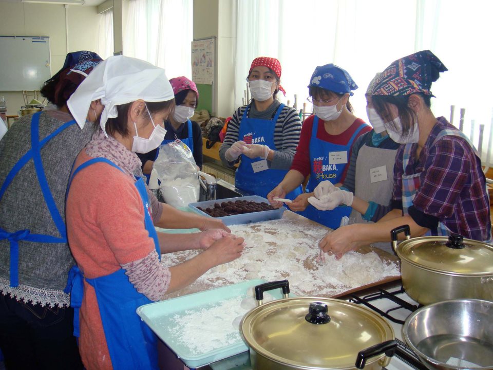 前日の仕込から大勢の皆さんの手を借りて、朝から20臼(36s)のもち米をつきました。私の準備の不手際も多々在りましたが、副会長の貝森さん、松橋さんの絶大なサポートと、お母さんたちのチームプレー、そして鳥取8丁目町内会の小野正さん(元 お菓子職人)のご協力を得て無事終了することが出来ました。