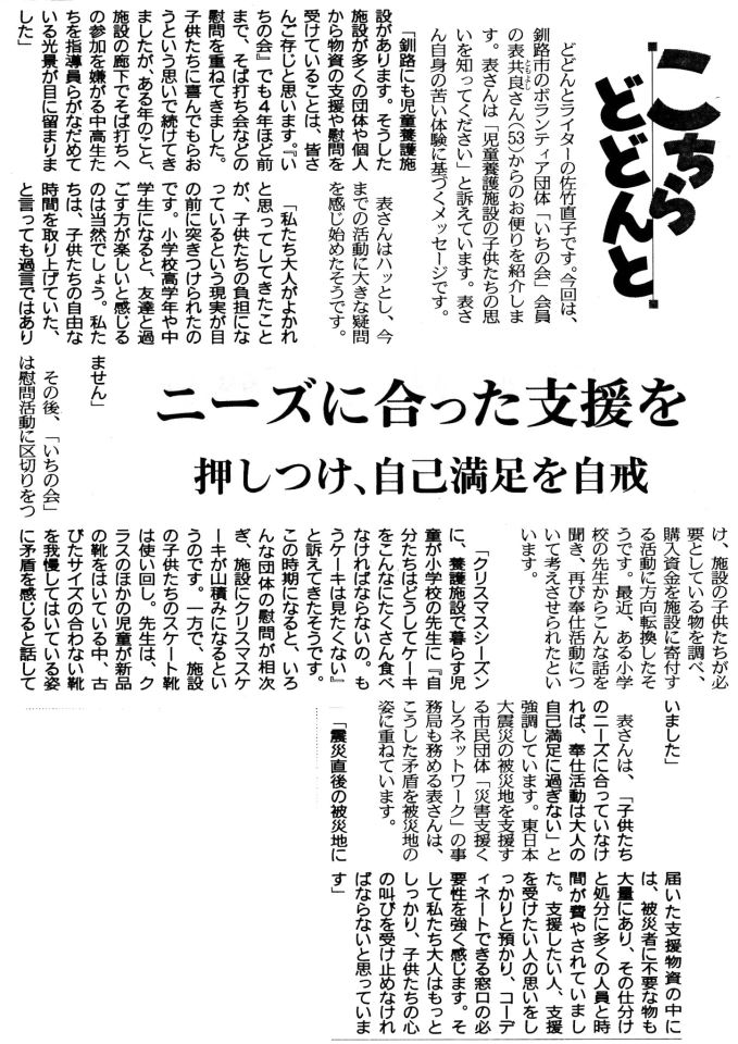 北海道新聞 夕刊に載りました。