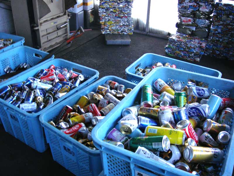 支店の作業場に一週間分の「空き缶」のアルミ缶・スチール缶の選別作業(タバコの吸殻などのゴミやビンなどの異物取り除く)を行ないました。