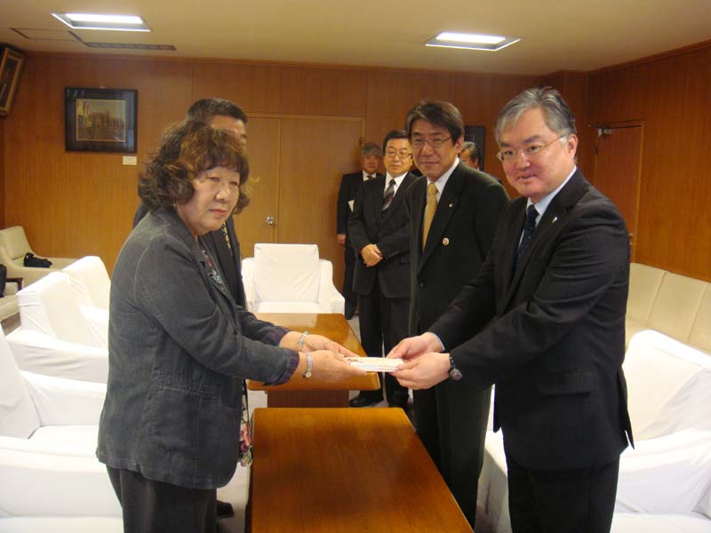 今日は1月に行った釧路市ボランティア連絡協議会「カレンダーリサイクル市」の収益金から25万円分の図書券を購入し、蝦名釧路市長立会いの下、釧路市PTA連合会 吉田信二会長にお渡しさせて頂きました。
