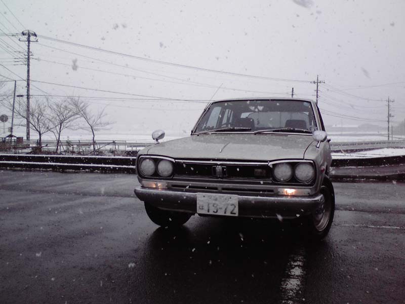 周りの車の方は珍しい雪とハコスカが雪の中を走っているのに驚いていたようです。