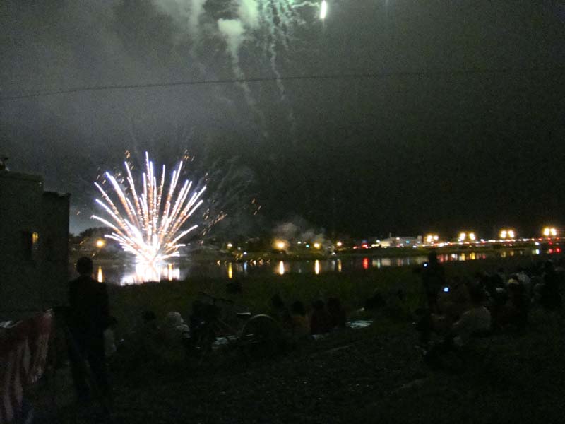 昨夜は釧路新聞社主催による新釧路川花火大会が在りま、毎年当社にあるステージカーを準備させていただきました。花火の打ち上げ前に「釧路蝦夷太鼓保存会」の皆さんが華麗で迫力ある3曲を披露され、花火が始まりました。また、良太は水上君に2人で当社のお客さんの藤本さんの指導の下、「カブト虫」を売らせて貰いました。