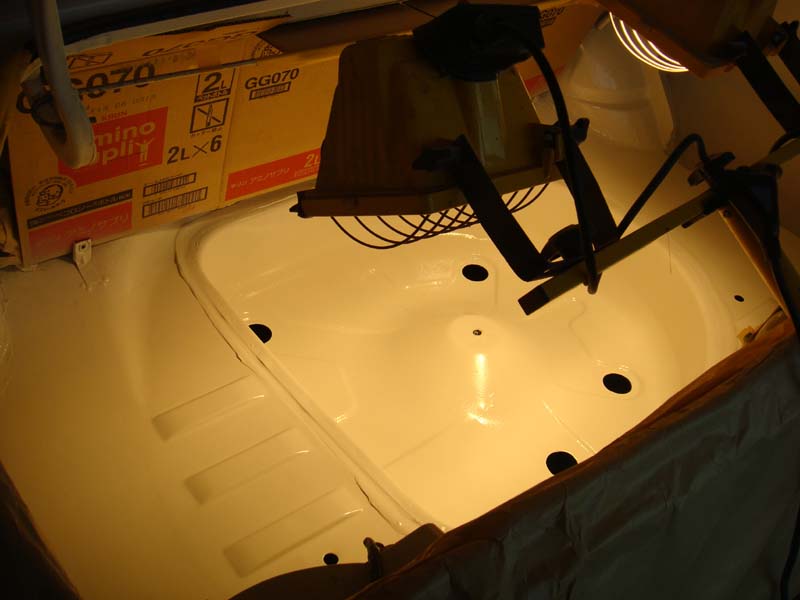 ヒートプレートの装着も完了して、細部の確認を行いました。各所が良くなることにより、トランク内の仕上げが気になり、再度トランク内の再仕上げを行っています。今日いっぱい塗膜を乾かした後、雨が上がり次第試乗して納車の段取りを行いたいと思います。