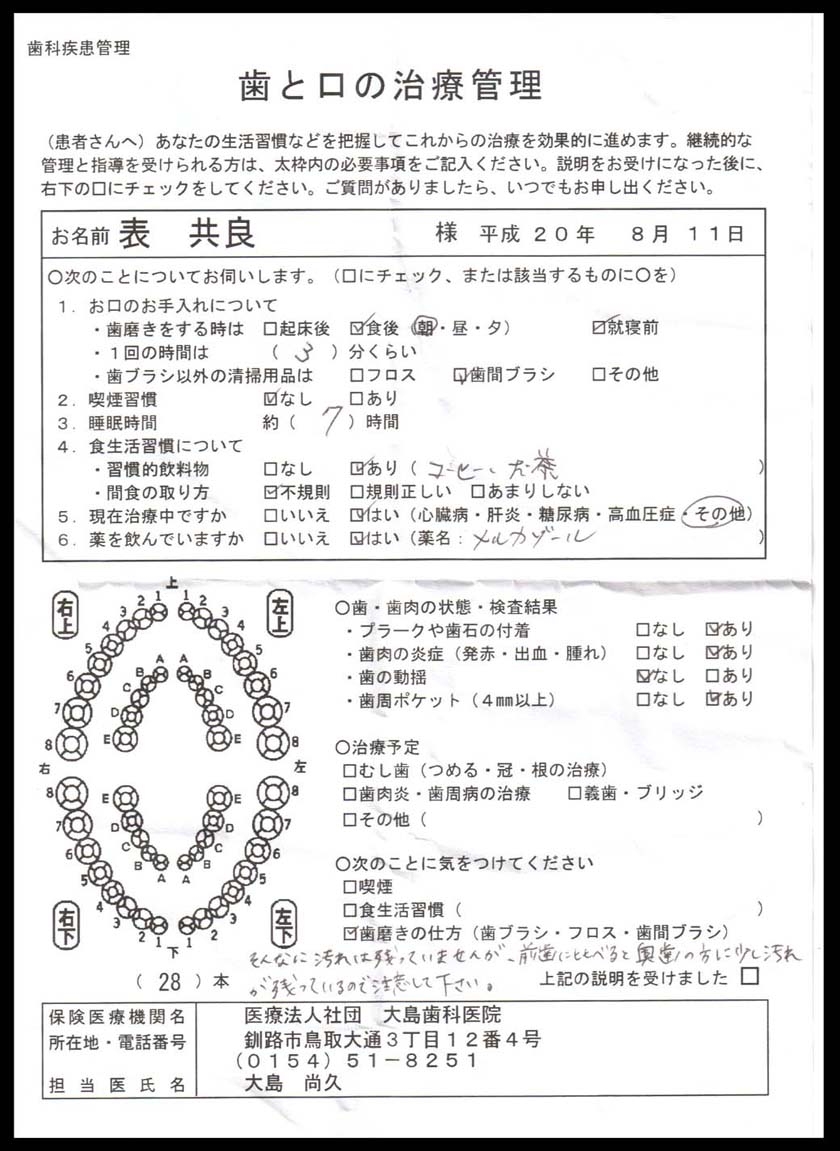 昨日は大島歯科医院さんへ「歯の定期健診」に行って来ました。半年ぶりの検診で少々不安でしたが、特に治療を要する個所もなく安心しました。奥歯や歯と歯の間などの掃除と磨きを行って貰い、口の中がスッキリしました。次回の定期健診は11月なので、虫歯にならないよう、歯磨きを丁寧に行いたいと思います。