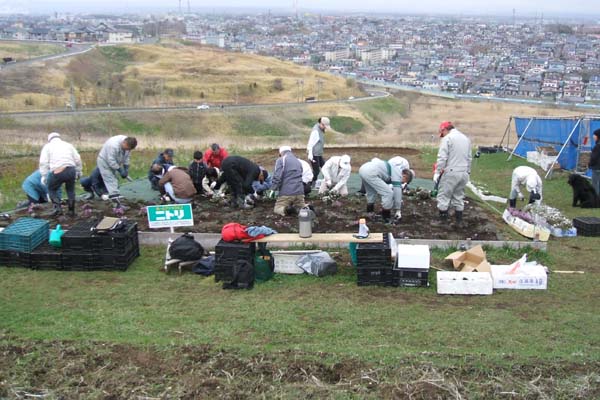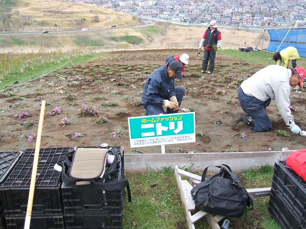 その掘り出される石炭に混じる屑がズリ山となり、木や草も生えない殺伐として風景でしたが、ズリ山に肥えた土を盛り、芝桜を植えて楽しみましょうと頑張っている皆さんがおられます。