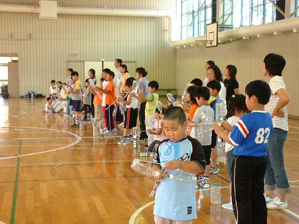 参加者全員がペットボトルなどの廃棄物を利用して、大勢で遊びまた学ぶ事が出来たことと思います。