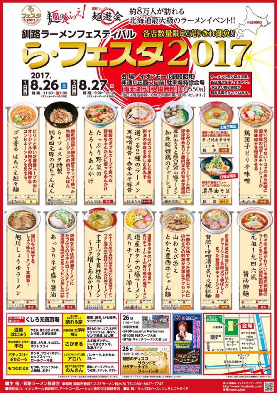 釧路ラーメンフェスティバル「ら・フェスタ 2017」開催のご案内です。