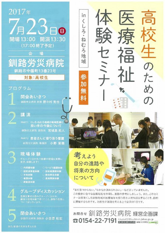 第7回 高校生のための医療福祉体験セミナーinくしろ・ねむろ地域