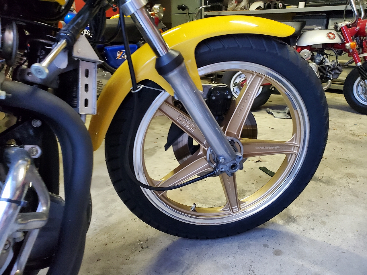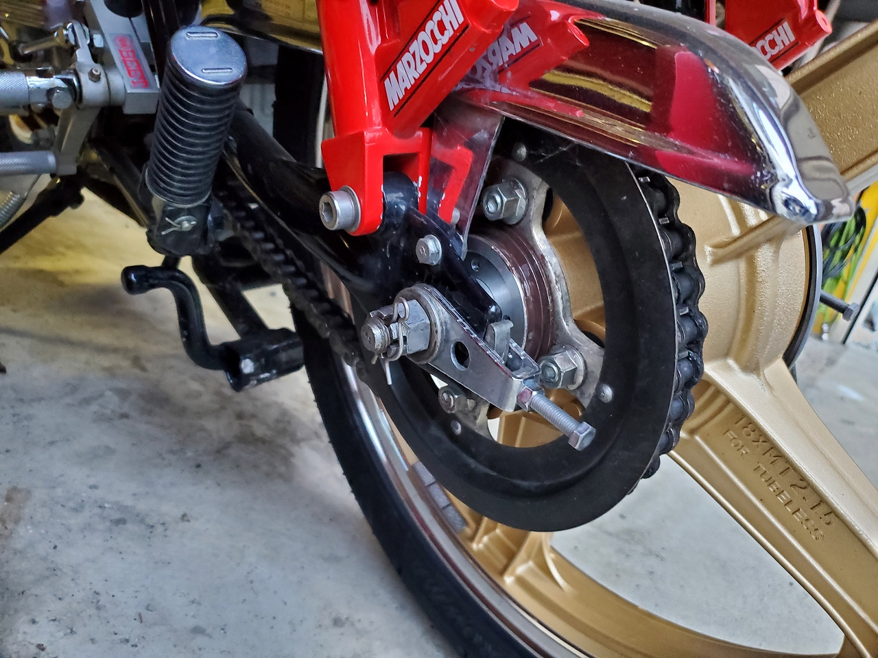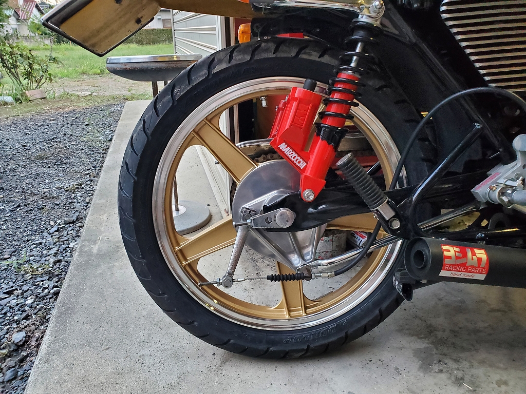 | 「バイク:CB400Fの写真を送っていただきました!!」 【田島様・コメント】 12年前、地元の後輩から譲り受けました。 結構フレームもエンジンも全体的にヤレていましたのでレストアを始めたのですが、バラしていくとフレームのネックと ステップの付け根、サイドスタンドの取り付け部が歪んでいたため フレーム修正に出ました。 エンジンはエンジン番号が無く(削ってある訳でなく当時トラブルで新品のケースに載せ替え)昨今は車検が取れないので、 知り合いのバイク屋さんから貴重な398ccのケースを譲って頂いてシリンダーはヨシムラピストン455ccで傷だらけ(ヘッドガスケット反対組みカムチェーンでヘッドガスケットを削り)使えない状態 オークションで中古の398ccシリンダーを買いアゲイン455ccで組みました。 塗装、内燃機加工、リヤショックオバーホール作業以外は自分で仕上げましたので、1年かかりました。 自分でエンジンオーバーホール調整、ホークオーバーホール、ブラスト、磨き上げフレームに組付けキャブレターセッティングその他 自分で仕上げたので思い入れはありますね。 「譲り受けた時のスペック」 ・ヨシムラ 455ccボアアップ ・BEET キャストホイール ・BEET バックステップ ・モトコ シングルシート ・マルゾッキ ショック ・シビエ 凹みレンズヘッドライト ・ヨシムラ 手曲げ管(当時物) 「現在のスペック」 ・アゲイン 455ccボアアップ ・アゲイン S1カムシャフト ・ヨシムラ TMRキャブレター ・ウオタニSP 点火システム ・ハヤシ キャストホイール ・BEET バックステップ ・モトコ シングルシート ・マルゾッキ ショック ・スキャン アールフィンカバー ・シビエ 凹みレンズヘッドライト ・ヨシムラ 手曲げ管(当時物) ・キジマ オイルクーラー ・BRC CJタイプフロントフェンダー |